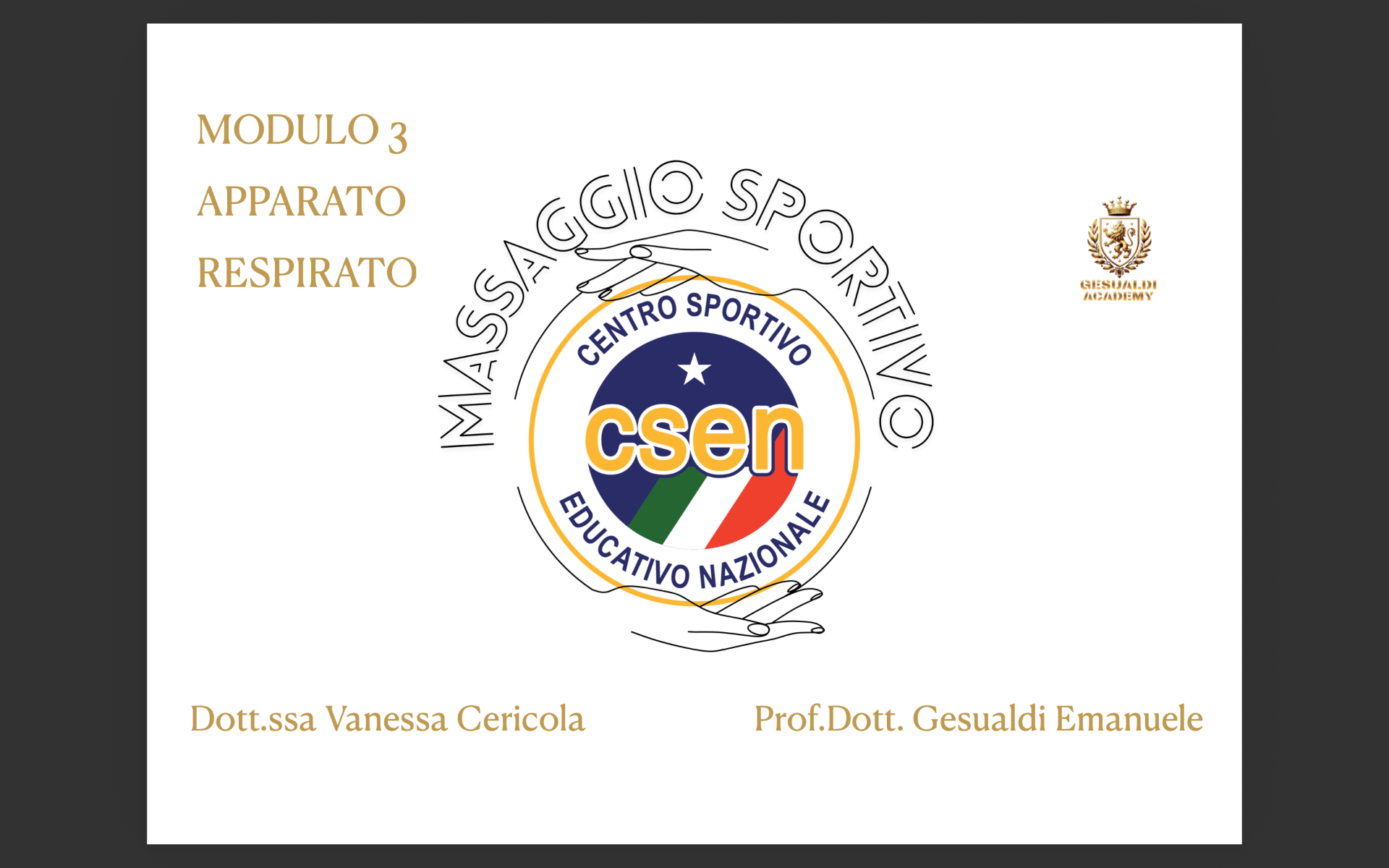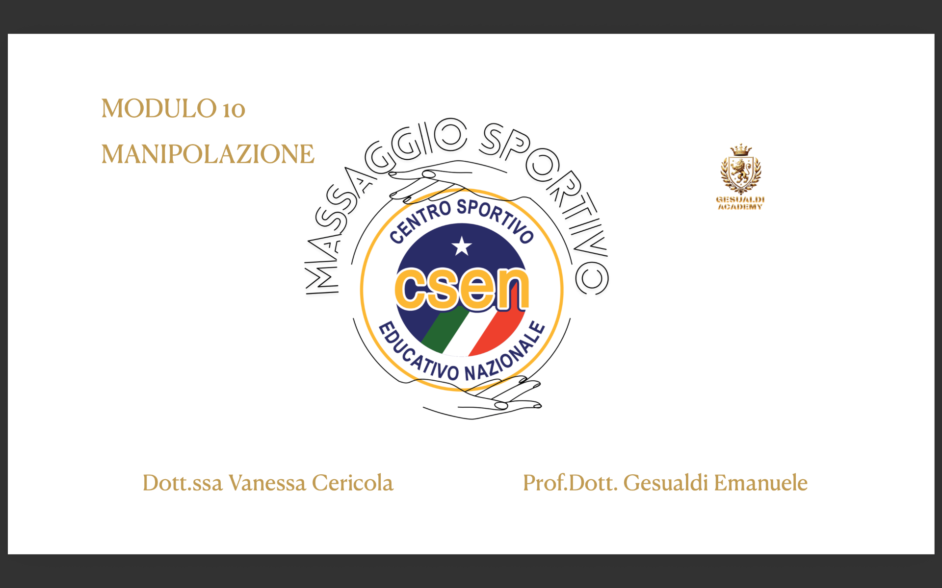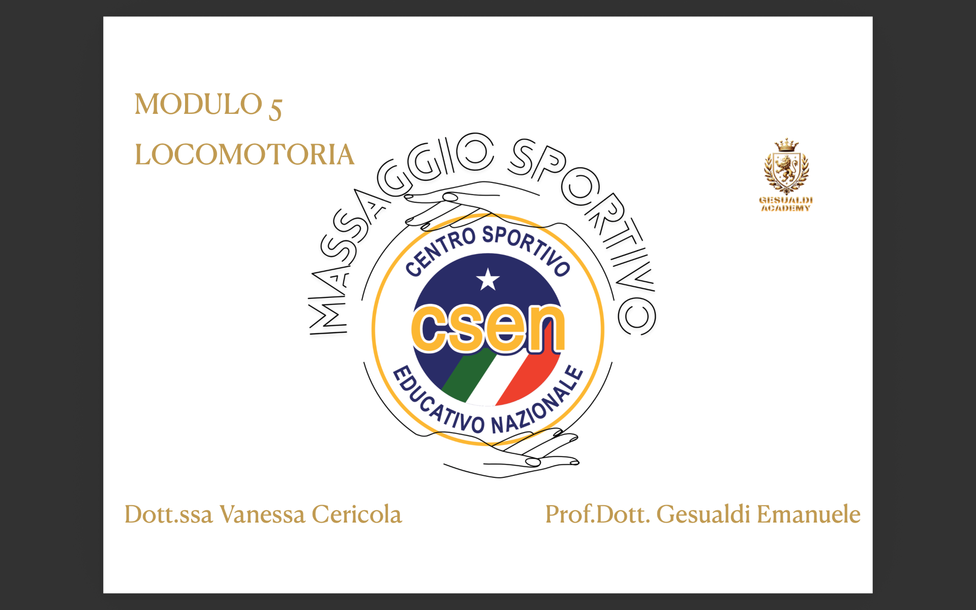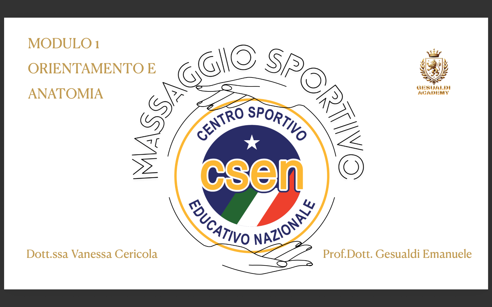 La Gesualdi Academy in collaborazione con il comitato CSEN Ascoli Piceno organizza il corso con qualifica nazionale e tesserino tecnico di Operatore massaggio sportivo.