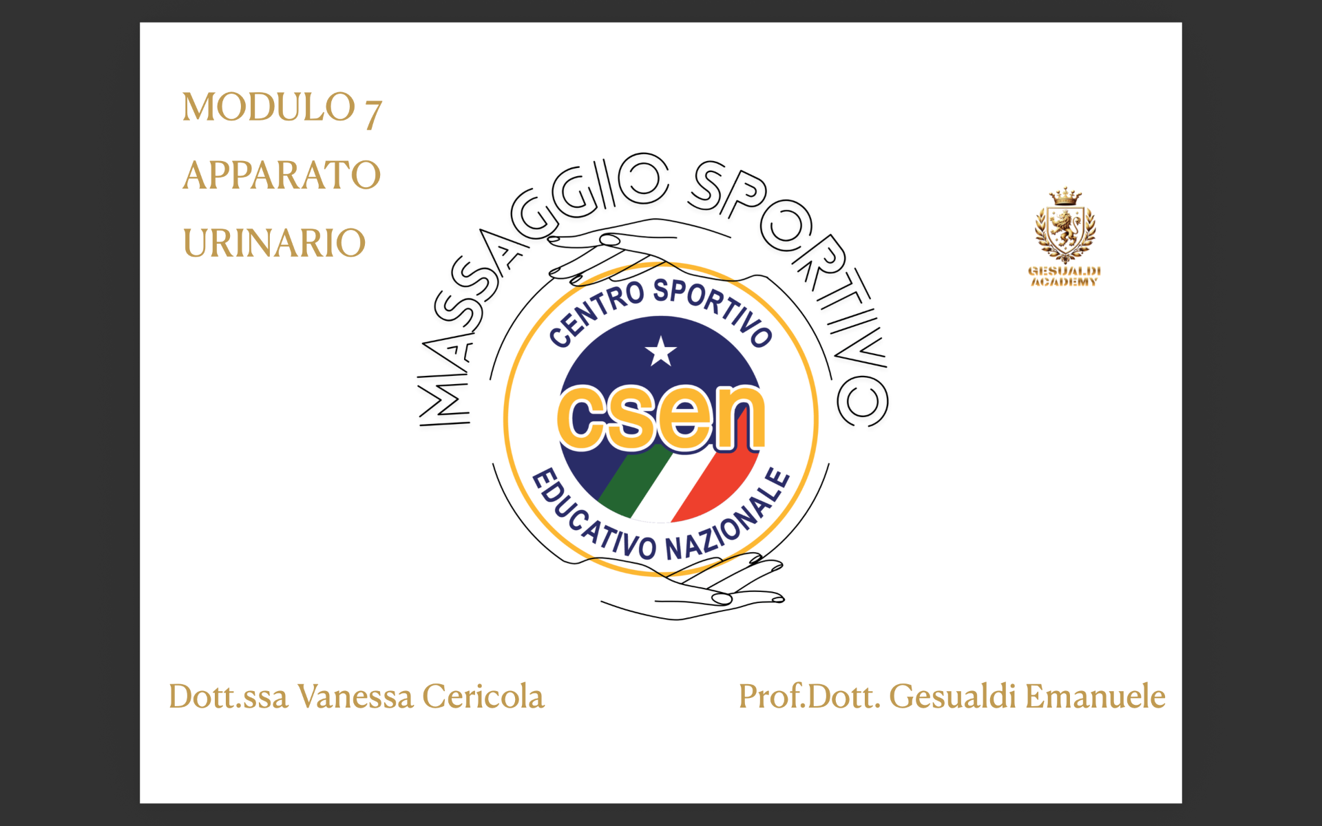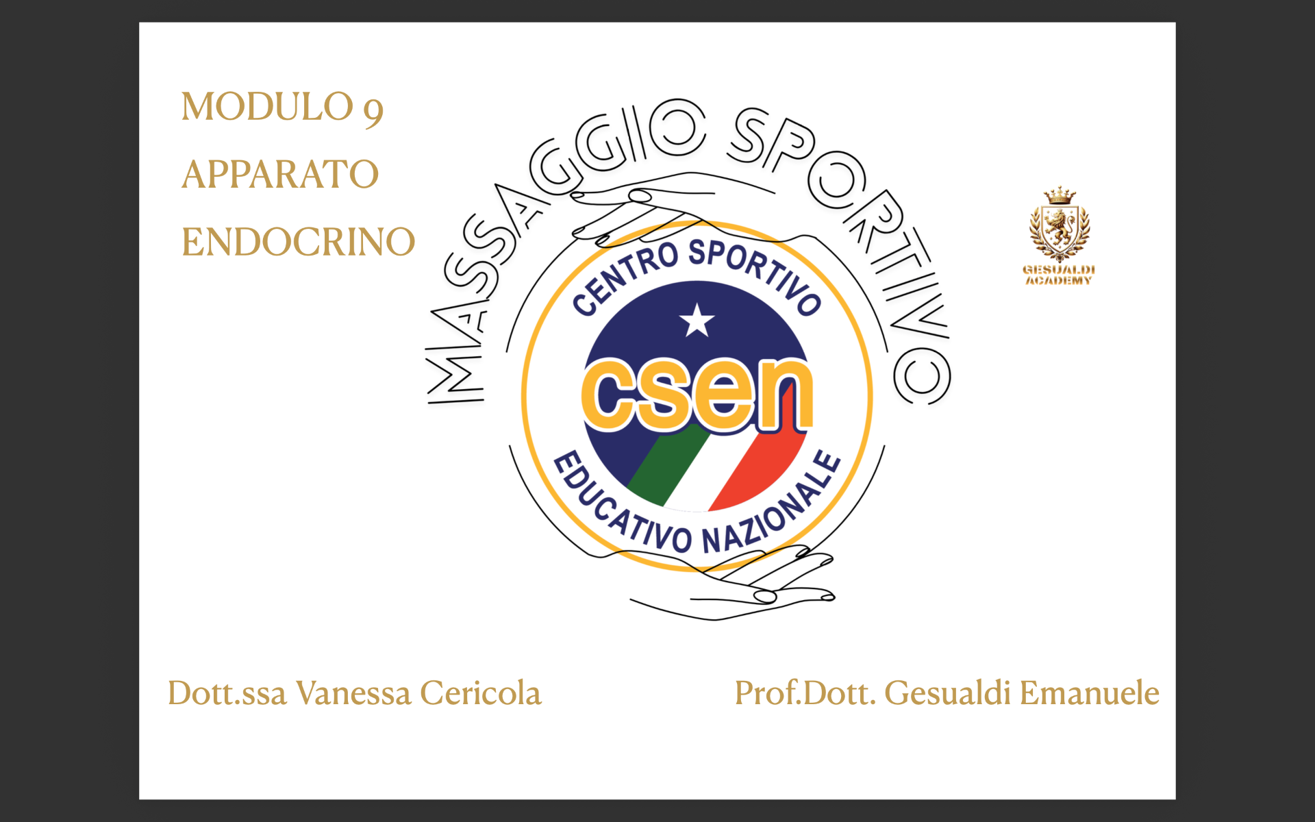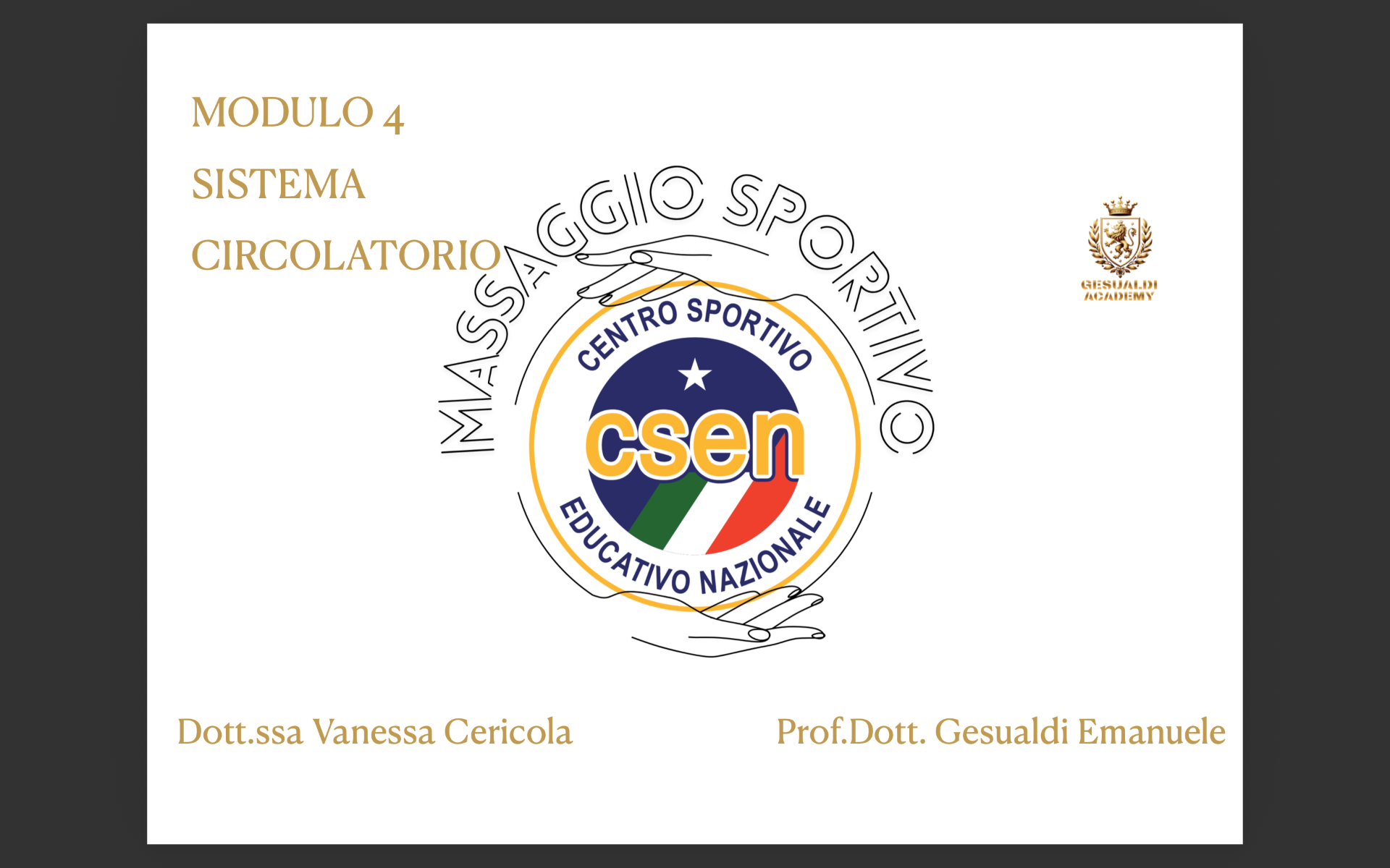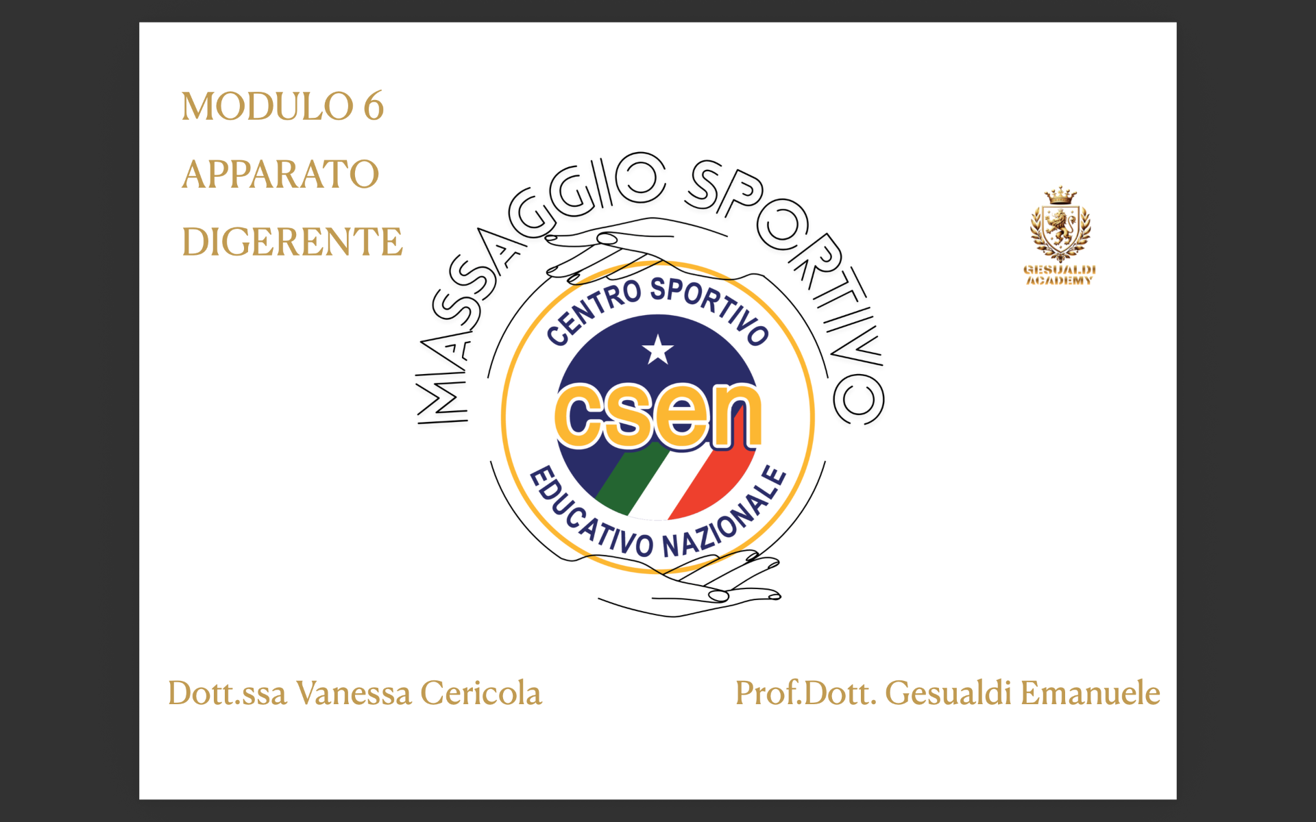 La Gesualdi Academy in collaborazione con il comitato CSEN Ascoli Piceno organizza il corso con qualifica nazionale e tesserino tecnico di Operatore massaggio sportivo.